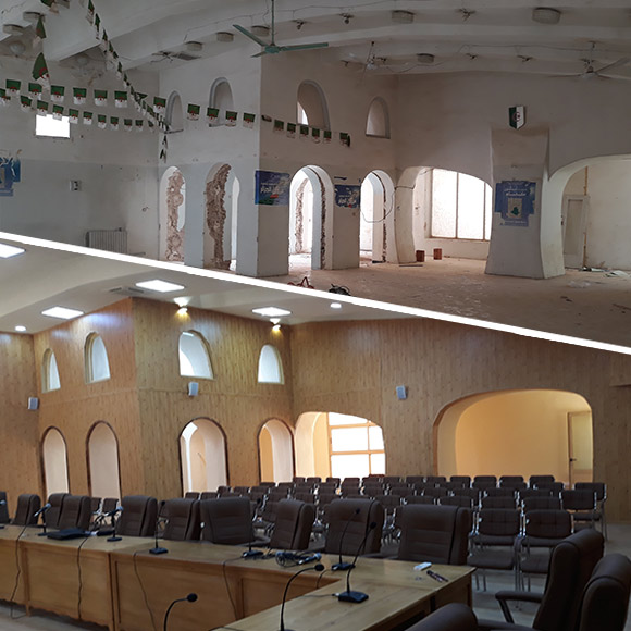 دراسة ومتابعة إعادة تأهيل قاعة الاجتماعات بمقر بلدية غرداية (انجز من قبل المعماري العالمي Pouillon)